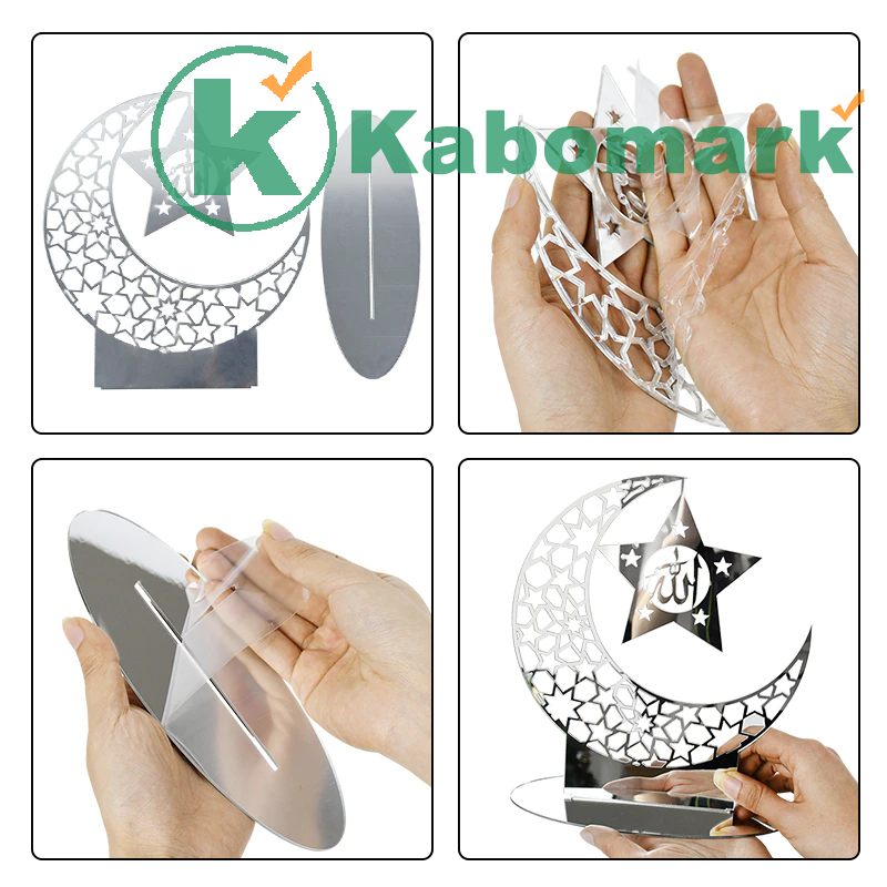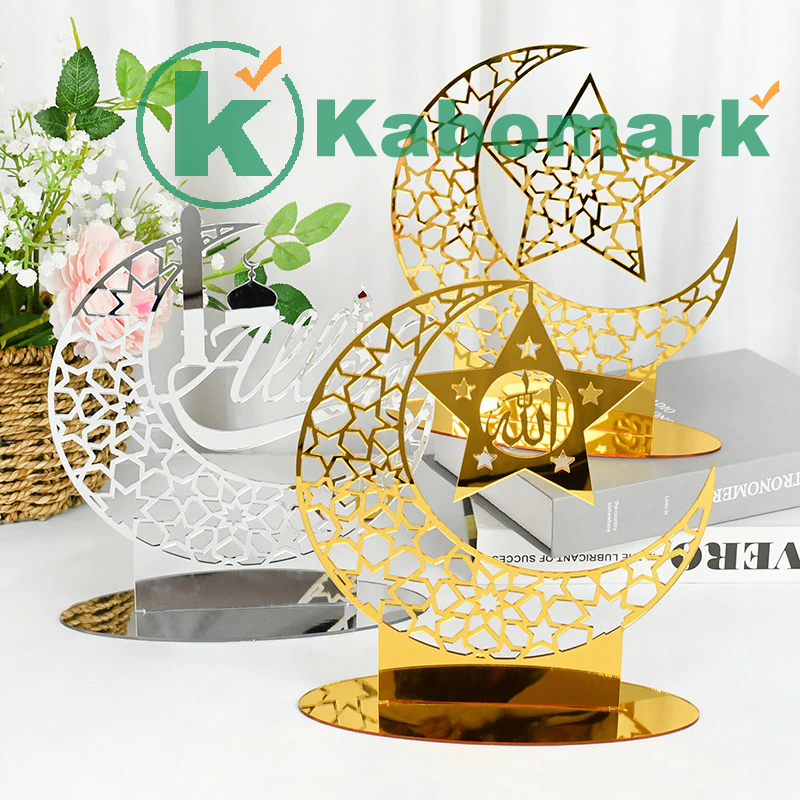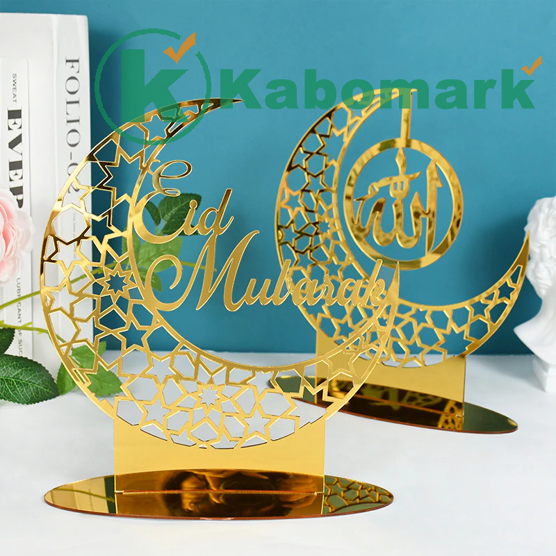 Hollow Out Ramadan Moon Acrylic Table Ornament Eid Mubarak DIY Decoration For Home Kareem Eid Gift Islamic Muslim Party Supplies